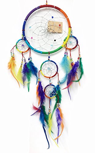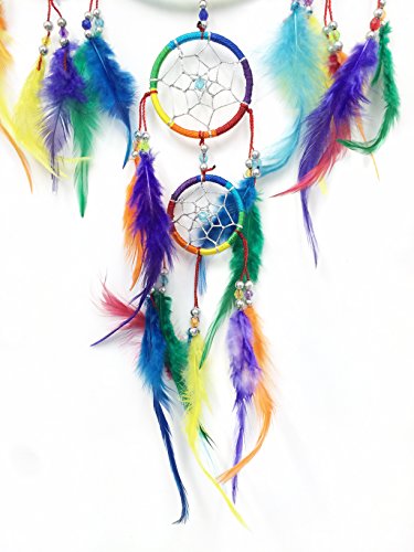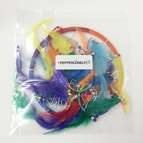PEPPERLONELY Dream Catcher Multi-Color Feathers 6.5 Inch Diameter, 24 Inch Long