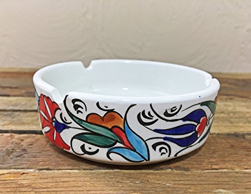 -. Feature : Turkey has one of the oldest traditions of fired earthenware manufacturing in the world reaching back thousands of years, from the P.R.Imitive sculptures of prehistoric Anatolia to the ornaments and crockery of the Hittites and finally the ornate hand-painted tiles of Iznik / Traditional Turkish ceramics, or 'çini' are known for their bold and uplifting designs and vibrant colors. / Traditional Turkish ceramics, or 'çini' are known for their bold and uplifting designs and vibrant colors / Decorative classic ashtray / 4.5 x 4.5 x 1.5, Dishwasher safe, Artisanal product of premium quality