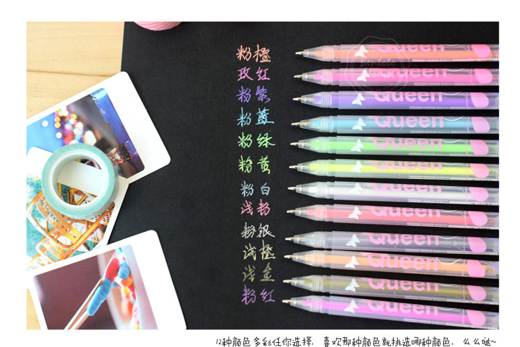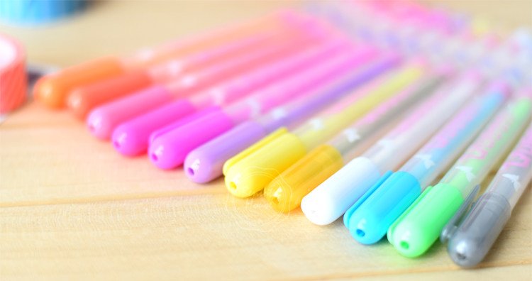 韩国文具 清新荧光笔 水粉笔 粉彩笔 DIY涂鸦黑卡彩色笔