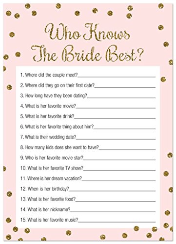 24 Cnt Faux Glitter Who Knows the Bride Best Game Cards (Pink)
