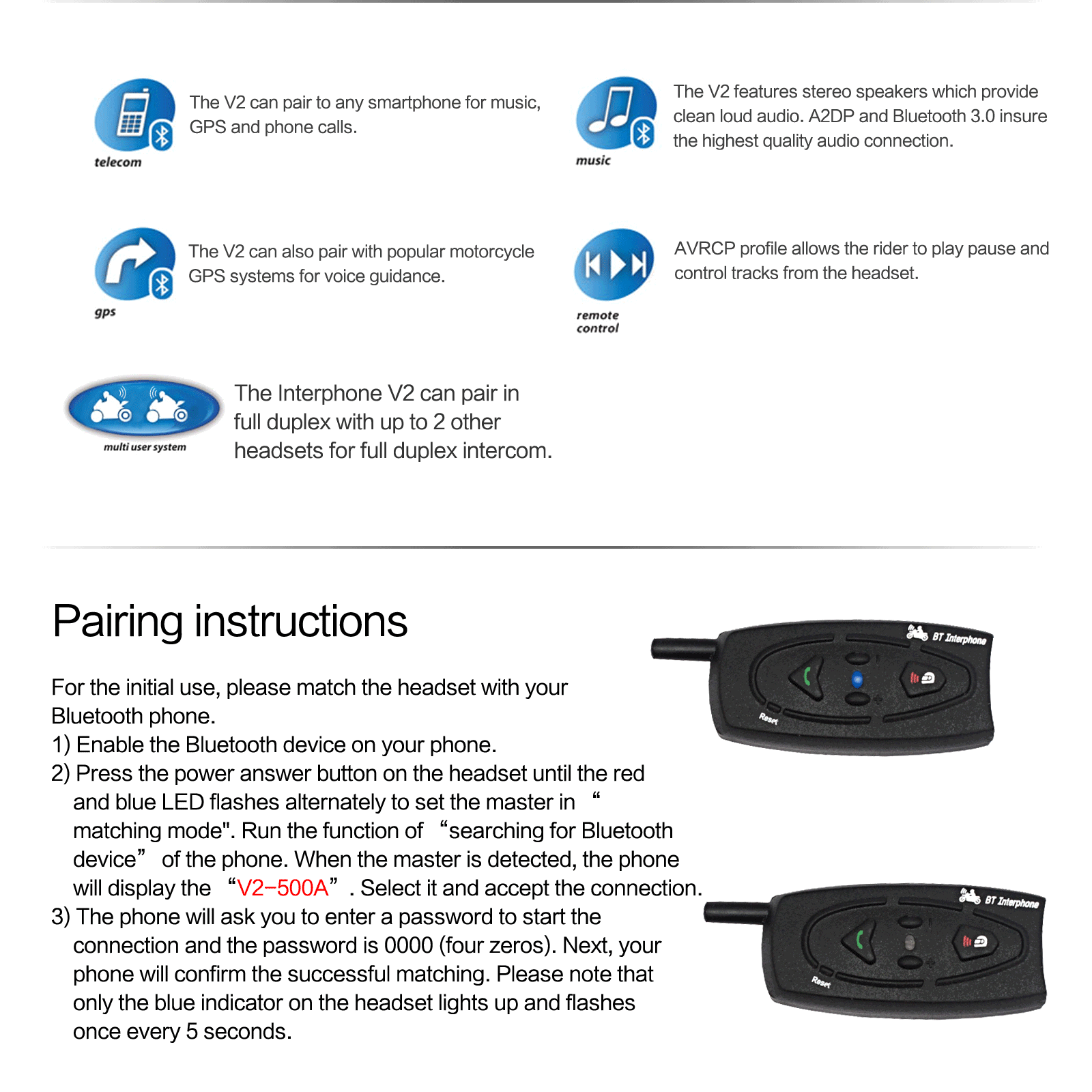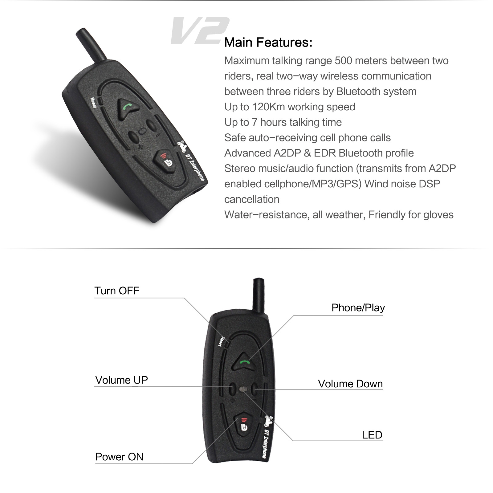 1)Maximum talking range 500 meters between two riders,
