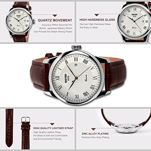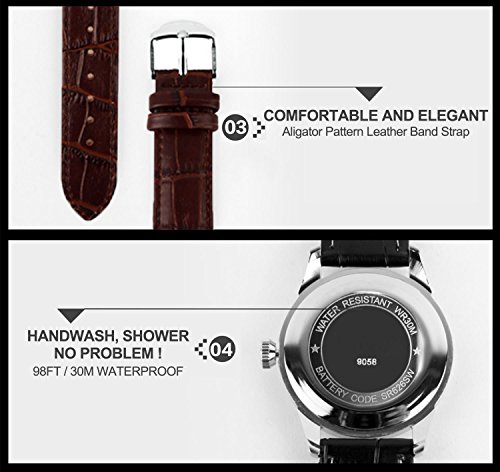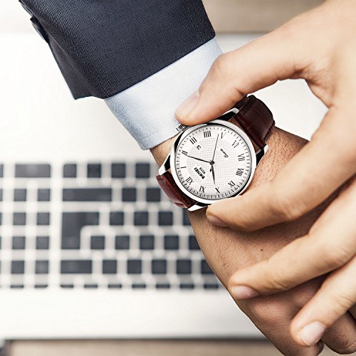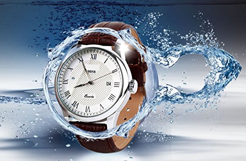 Studio : Aposon Publisher : Aposon Binding : Watch Product Description Highlights: ? Original Japanese Quartz Movement: provide precise and accurate time keeping ? Roman Number Time Mark ? Classic Business Casual Design. Combines quality, leading edge fashion, and value. ? Stainless Steel Dial Case Back Cover ? Calendar Date Window ? Normal Water Resistant: daily use waterproof, not suitable for underwater activities - such as shower, swimming, ect. Please DONOT wear this watch underwater. Features ? Roman Number Time Mark ? Calendar with Day and Date Material: ? Case Material: Stainless Steel ? Band Material: PU Leather ? Mirror Surface: Mineral Glass Specification: ? Dial Color: White ? Dial Case Diameter: 1.6 inch / 4 cm ? Dial Case Thickness: 0.6 inch / 1.6 cm ? Band Color: Brown ? Band width: 0.8 inch / 2 cm ? Band Length: 9.5 inch / 24 cm. ? Band Clasp Type: Buckle ? Watch Weight: 3.5 oz / 98 g **NOTE**: ? Please DONOT wear this watch underwater. Also avoid the use in extreme hot or cold temperature. ? If mist or droplets found inside watch surface, please contact manufacturer immediately for maintenance to prevent moisture corrosion of the internal components. ? Clean the strap by a soft cloth on regular bases is highly recommended. ? Too much water contact will shorter watch life. What Is In The Package: ? Aposon Watch x 1 0