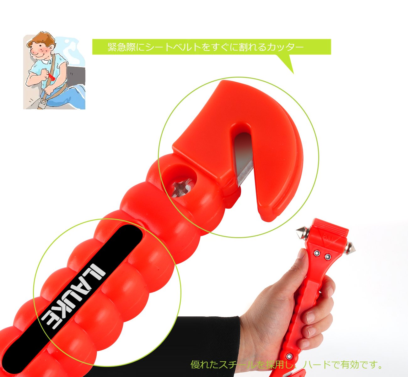 Safety hammer is designed to be used only for emergency escape.