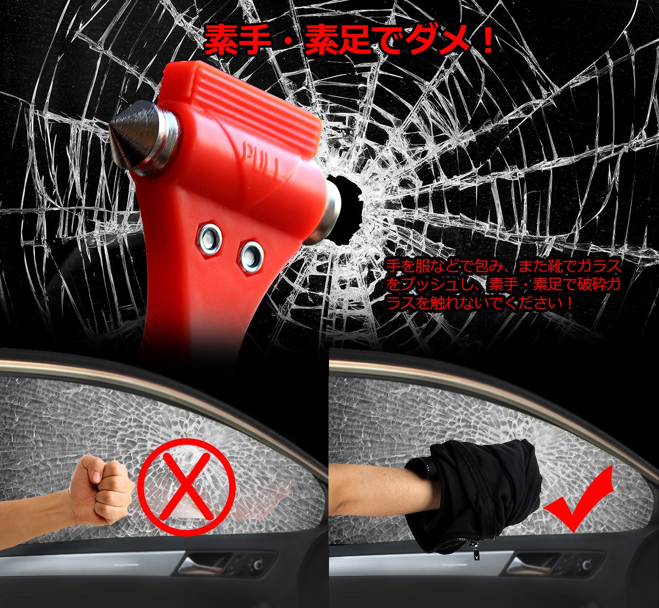 Please protect your face and eyes with another hand when breaking the window.
