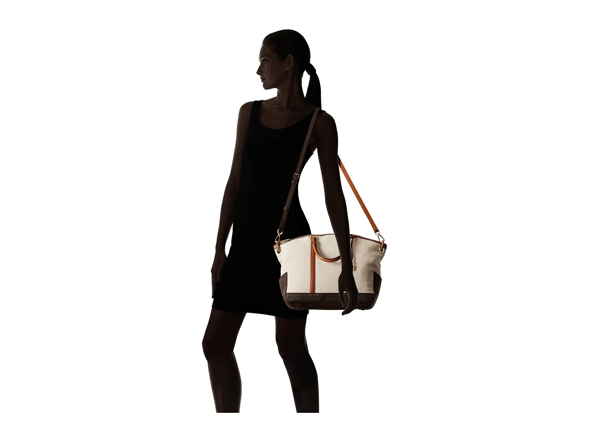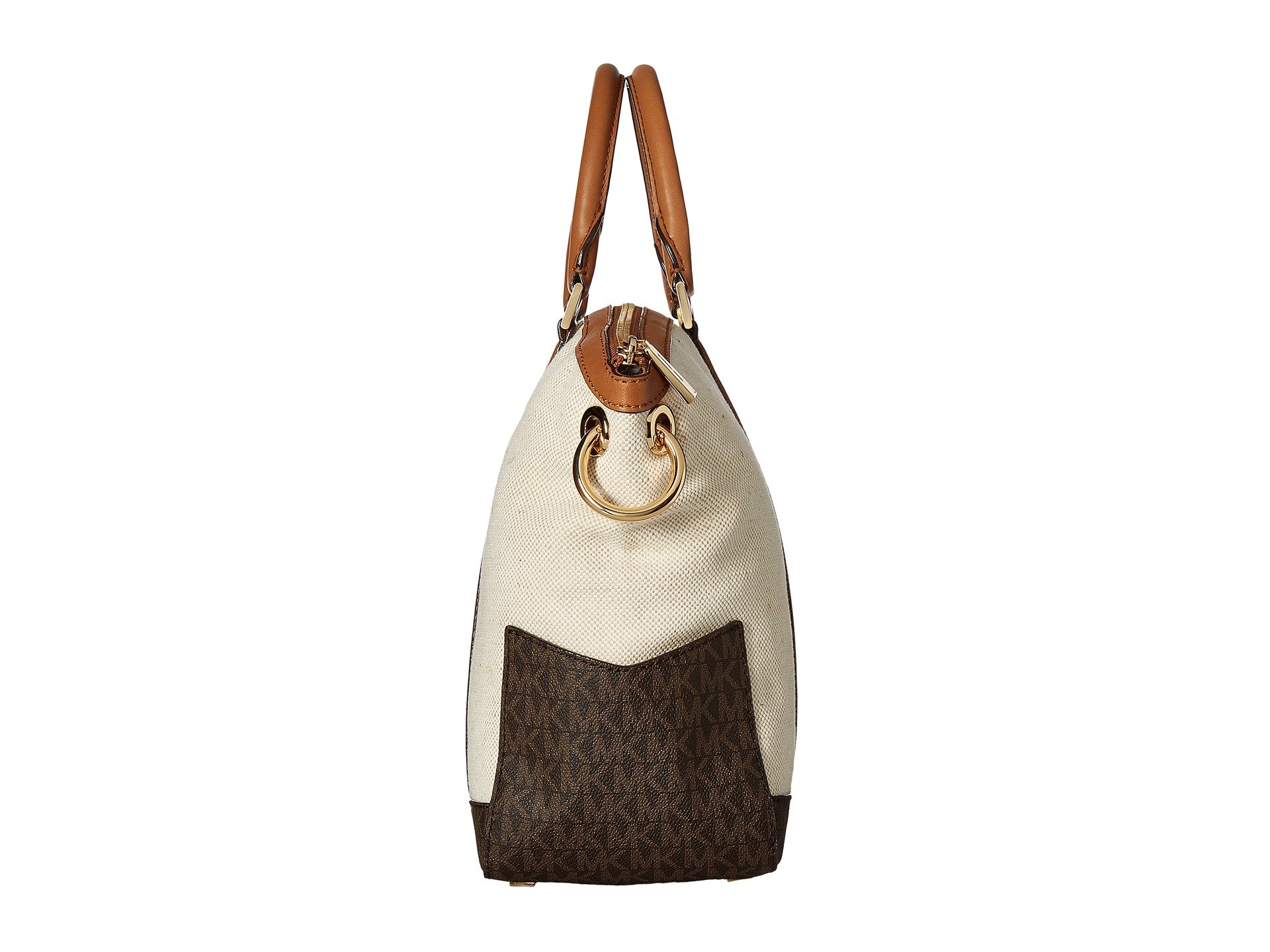 | Product Information SKU: #8954749The spacious and contemporary MICHAEL Michael Kors ? Beckett Large Top Zip Satchel is everyday chic! Made of genuine leather.Dual rolled top carry handles and a detachable crossbody strap.Logo branded hanging lock.Interior features a back wall zip pocket, eight slip pockets, and a key hook.Imported.This product may have a manufacturer's warranty. Please visit the manufacturer's website or contact us at warranty@support.zappos.com for full manufacturer warranty details.Please note, the hardware color and interior lining may differ from the color shown in the photo.Measurements: Bottom Width: 12 in Depth: 4 3?4 in Height: 10 1?2 in Strap Length: 44 in Strap Drop: 19 in Handle Length: 12 in Handle Drop: 5 in Weight: 1 lb 11.2 oz |