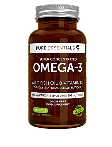 Pure Essentials Super Concentrated Omega-3 Wild Fish Oil and Vitamin D3 | 660mg Omega-3 EPA and DHA | 893 mg Triglyceride (rTG) Fish Oil |...
