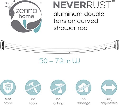 Zenna Home 35644BN, NeverRust Aluminum Double Curved Tension Shower Curtain Rod, 50 to 72-Inch, Satin Nickel