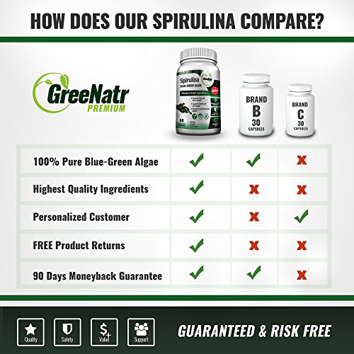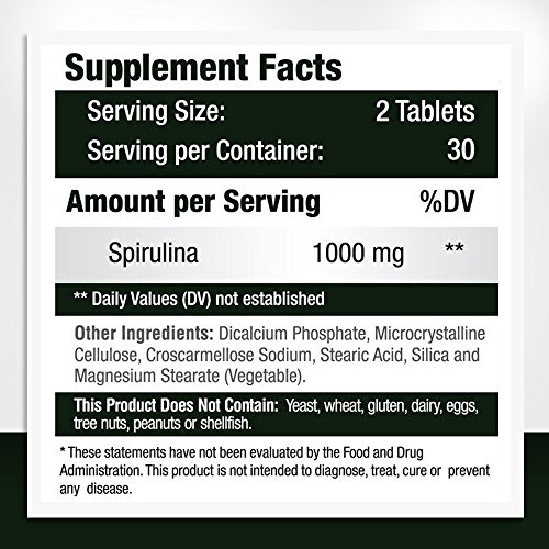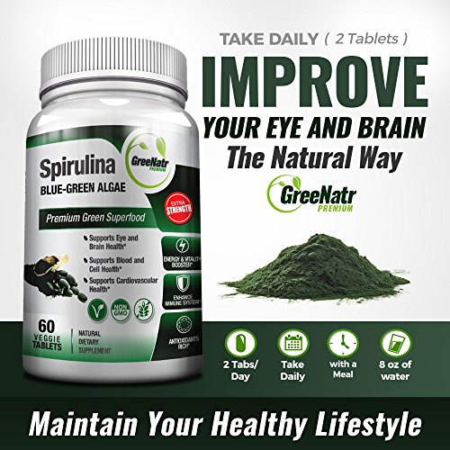 SPIRULINA BENEFITS IN ONLY SECONDS: Two tablets a day provide you with 1000mg of spirulina—much more quick and easy than trying to use spirulina powder to incorporate it into your diet. See the benefits with bolstered eye and brain health, cardiovascular health, and cell health—not to mention increased energy and clarity!