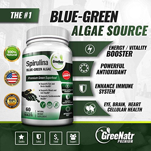 Spirulina Tablets - Blue Green Algae Pills - Veggie Formula / Non GMO / Gluten Free- See Spirulina Health Benefits At 1000mg Per Day - 30-Day Supply