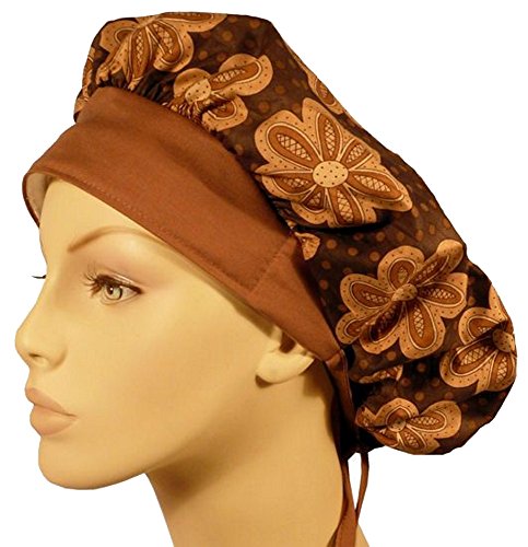 (Sparkling Earth)/Accessories/Hats/DIRECT FROM USA/Designer Bouffant Medical Scrub Cap - Wall Flowers On Brown