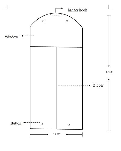 -. Feature : Breathable, soft, durable material. / Foldable, easy to hold. (With hand strap) / Translucent, convenient and quick to distinguish different wedding gown/ garment. / With top opening for hanger hook. / 23.23''* 9.06'' *67.12''