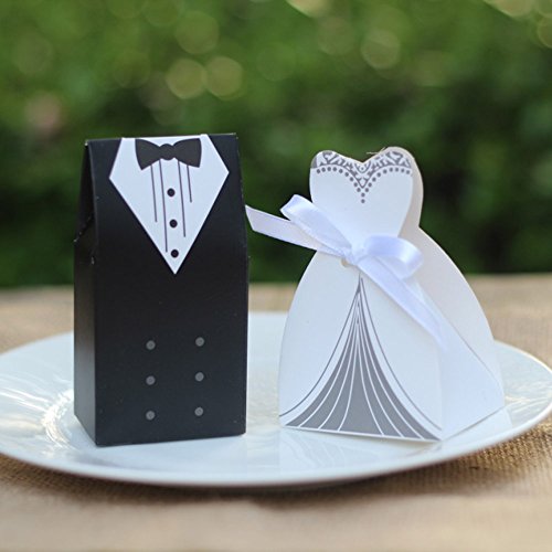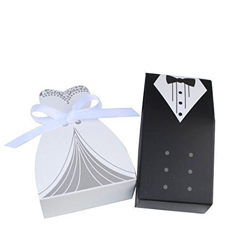 Awtlife 100 pcs Wedding Favor Box Bride & Groom Dress Tuxedo Party Favor Dress & Tuxedo Bride and Candy Box