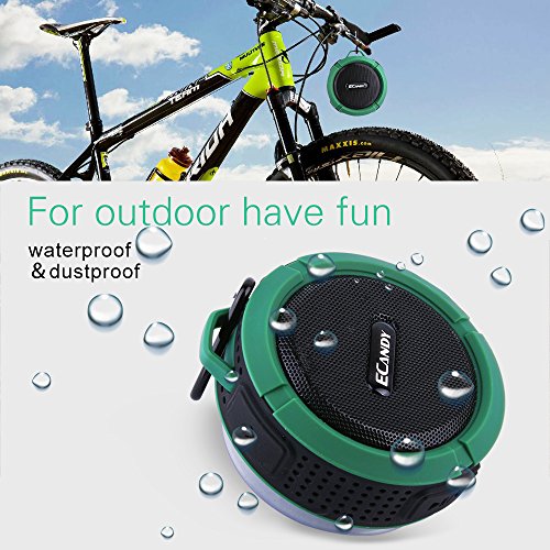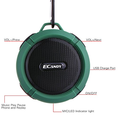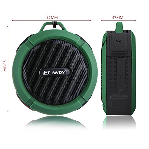 Ecandy 5 Watt Driver Portable Waterproof Bluetooth 3.0 Speaker Rugged Wireless For Outdoor/Shower with Built-in Microphone & Suction Cup & Snap Hook - Army Green