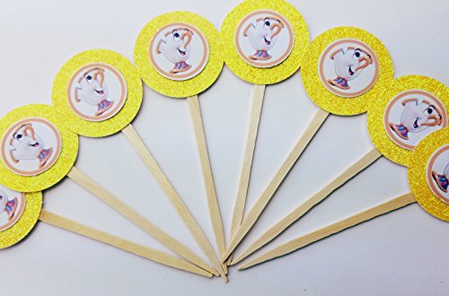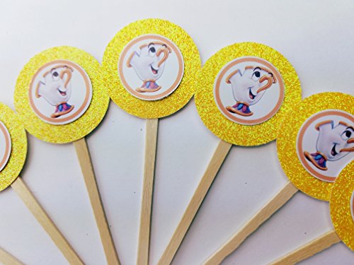 8 Chip Beauty and the Beast Disney Princess Yellow Glitter Cupcake Picks Birthday Favors Dessert Table Latina Disney Princess