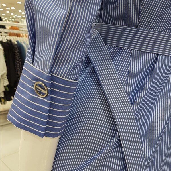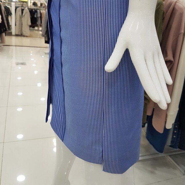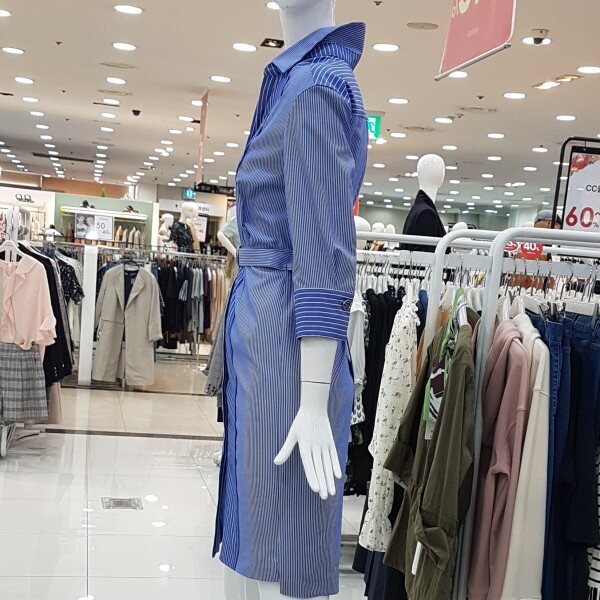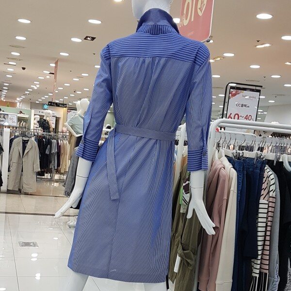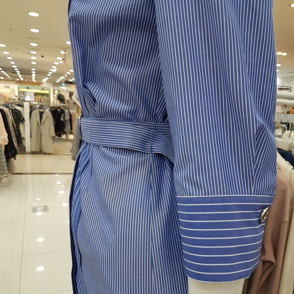 산뜻블루컬러에 스트라이프원피스네요일자핏에 벨티드라인은 날씬해보여용셔츠형에 도시적이고 세련된느낌이랍니다균일하지않은 스트라이프간격에통통 제상체가 여리해보이구요폴리혼방에 구김많지 않아용^^