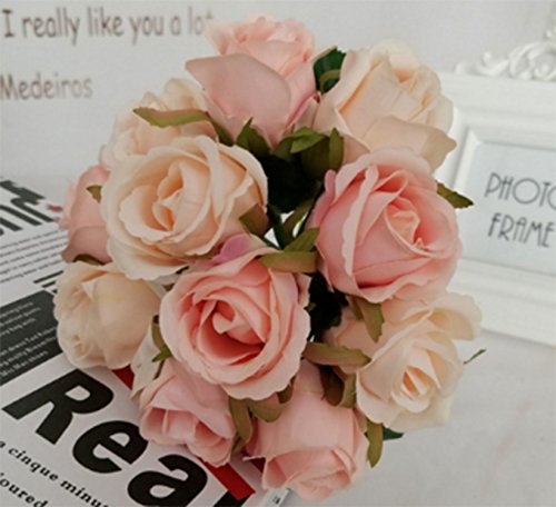 Mistari 12 Heads Plastic Artificial Flowers Roses Fake Silk Flowers Home Decorative Party Wedding (Champagne Color)