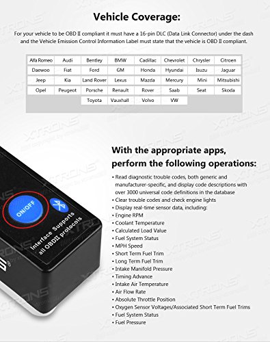 -. Title : XTRONS ELM327 Bluetooth OBD2 II Car Auto Diagnostic Scanner Tool ON/OFF Switch