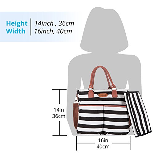 [Description] DIAPER BAG LUXURY : SAFE_ SPACIOUS and loaded with storage compartments_ our cute baby diaper bag purse puts a smile on every new mom``s face! With 5 outside pockets_ 1 zipped pocket_ 1 thermal bag and 3 net pockets on the inside_ including a zippered compartment and 2 other interior pockets. you can effortless carry everything you need. FASHION MEETS FUNCTION : Show off your style with our trend-setting diaper bag tote! As chic as it is practical_ it features 2 strollers hooks and 1 long strap_ offering you multiple ways to wear and carry it. Even after periods of extended use_ you``ll have total comfort. PREMIUM QUALITY WATERPROOF MATERIAL: Due to its waterproof fabric material the bag fabric keeps water away.Incase it will get dirty just wipe it with no wash. Whether you use your diaper bag for travel or make it part of your day-to-day routine_ you can rest assured knowing it``s made of strong_ high quality canvas cotton. The best part It``s incredibly easy to clean! Because let``s be honest_ kids can get pretty messy. FREE BONUS GIFT : What good is a changing diaper bag for mom if it``s not packed with accessories Each tote includes a CHANGING MAT_ BOTTLE HOLDER. As a special thank you for shopping with us_ you``ll also receive 2 of our cute PACIFIER CLIPS! 100% SATISFACTION GUARANTEE: At Kidnid_ we strive to make parenthood as fun and easy as it can be! If you``re not totally satisfied with your diaper bag organizer set_ you can return it for a replacement thanks to our 90 DAY worry free guarantee. There``s nothing to lose!