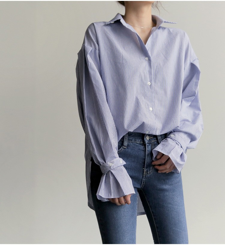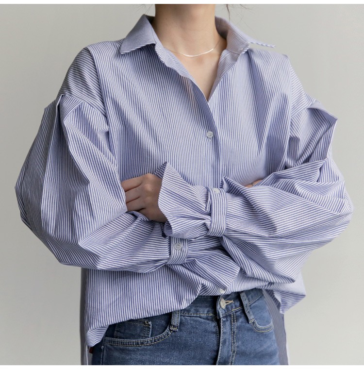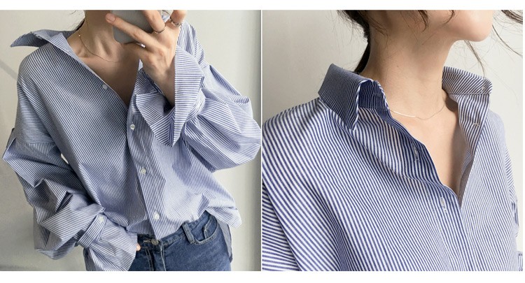 【製品仕様】■商品名長袖シャツ ブラウス レディース ストライプ ベルスリーブ オフショルダー シンプル■商品説明袖のフリルが大人可愛いストライプシャツ。大きめシルエットが、体を華奢に女性らしく見せてくれます。前開きなので、授乳中ママさんにもおススメ。■サイズ/寸法S M L XL■素材/材質コットン■色/カラー#1ネイビー長袖シャツ レディース ブラウス ストライプ ベルスリーブ オフショルダー シンプル 仕事 事務 通勤 ブルー オフィス おしゃれ きれいめ トップス