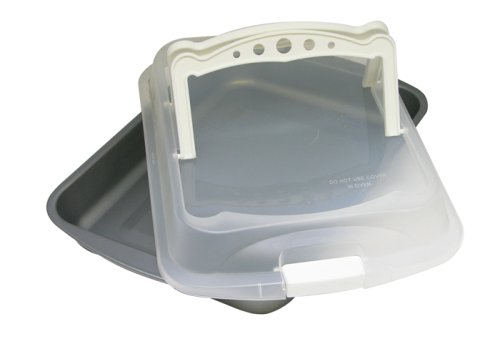 -. Feature : Convenient locking lid makes it easy to carry to fundraisers, bake sales, and parties! / Heavy weight steel construction ensures even heating across the pan for perfect baking results / DuraGlide Non-Stick finish allows baked goods to release easily from the pan while making clean up a snap / Pan & Lid are dishwasher safe