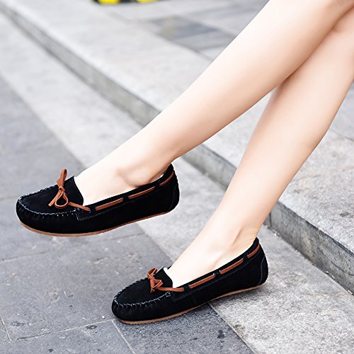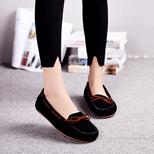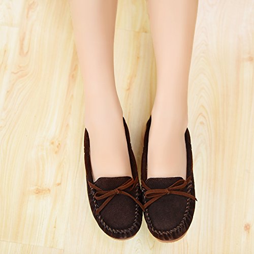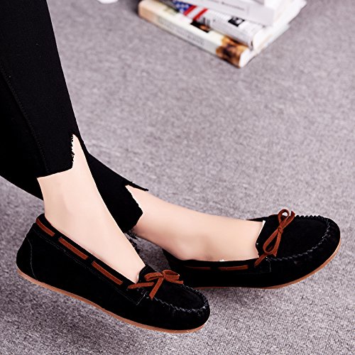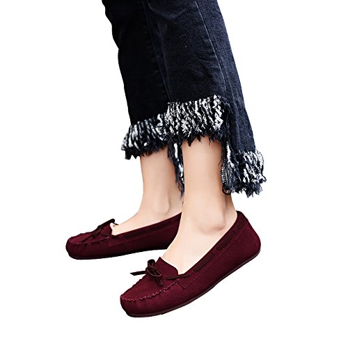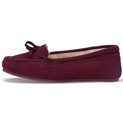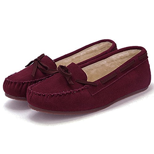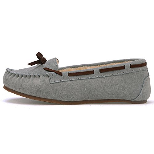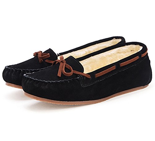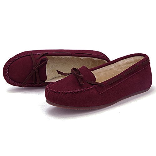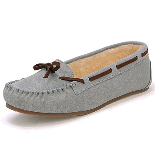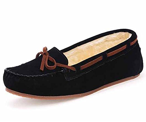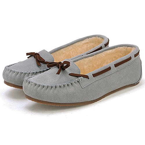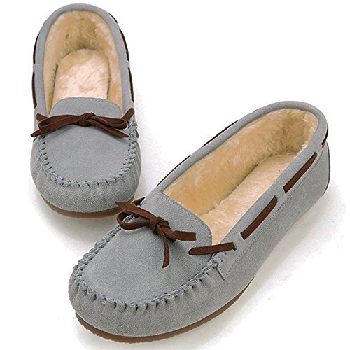 Description: Women slippers moccasins of fashion style - specially designed for women and ladies 5 Available colors of moccasins loafer for women - Black, Brown, Khaki, Red, Grey Inner - Warm and cozy faux fur Bottom - Soft and comfortable cushion Outsole - Sturdy and non-slippery rubber Decoration - Leather tie with around the collar lacing Occasion - Indoor/outdoor Moccasin:Keep your feet warm around the house; Notice - Don't wear in damp condition 0 |