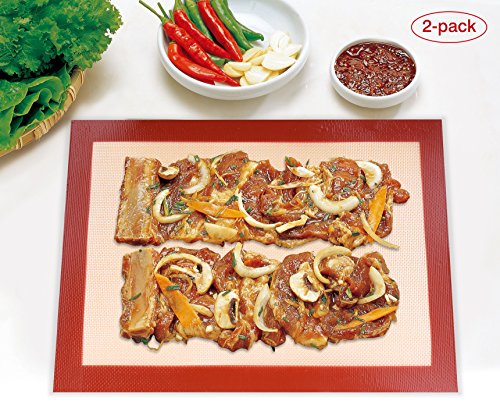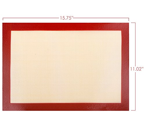 Nuovoware Baking Mat, [2 PACK] 15.7 x 10.7 Inch Reusable Prefessional Non-stick Fiberglass and Food Grade Heat Resistant Silicone Baking Mat Oven Sheet Pans Liner, BPA Free, Red Edge