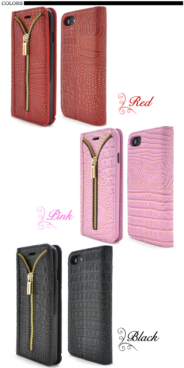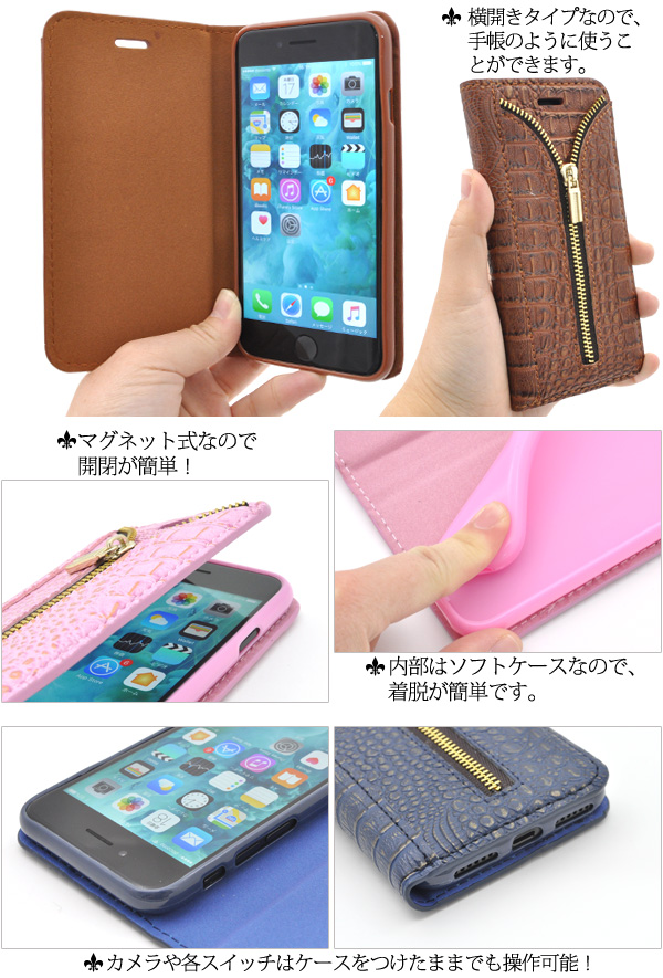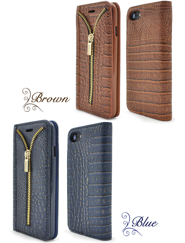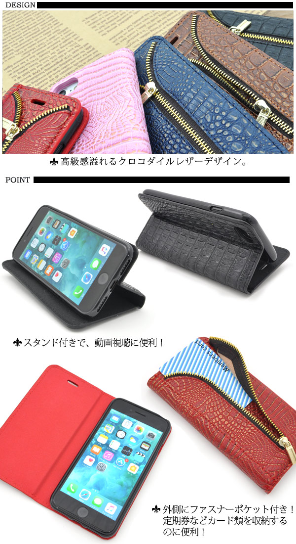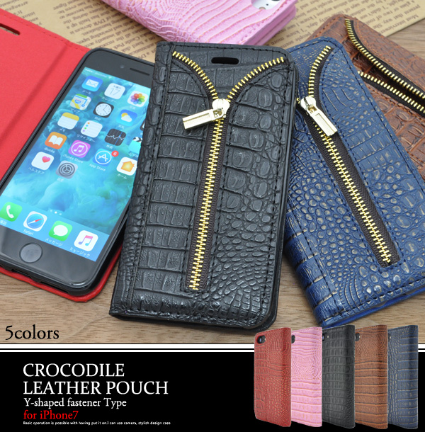 iPhone7用クロコダイルレザーデザインスタンドケースポーチ