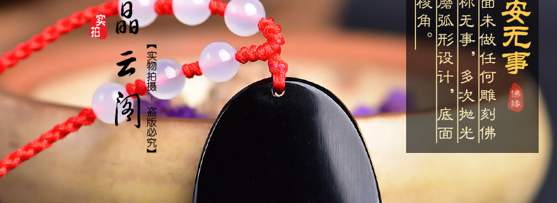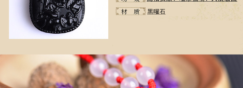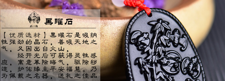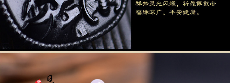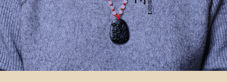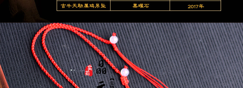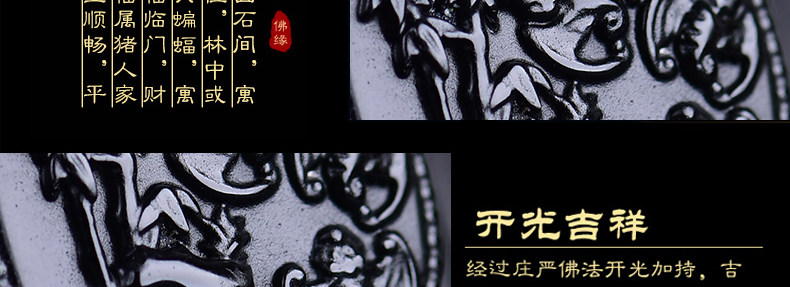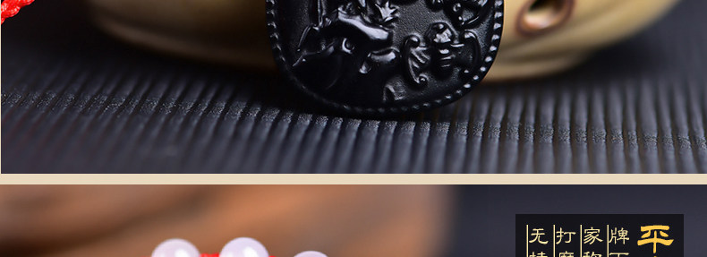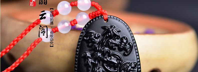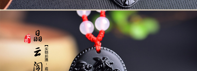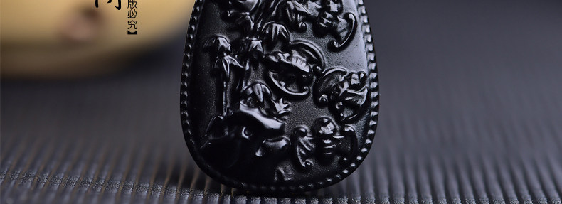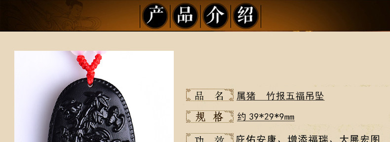 开光鸡年十二生肖属猪吉祥物 竹报五福黑曜石吊坠男女项链