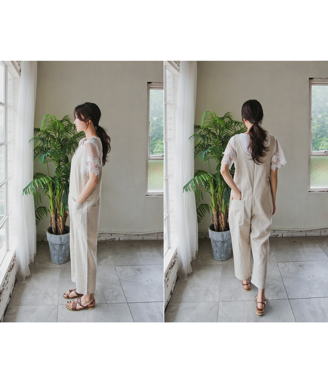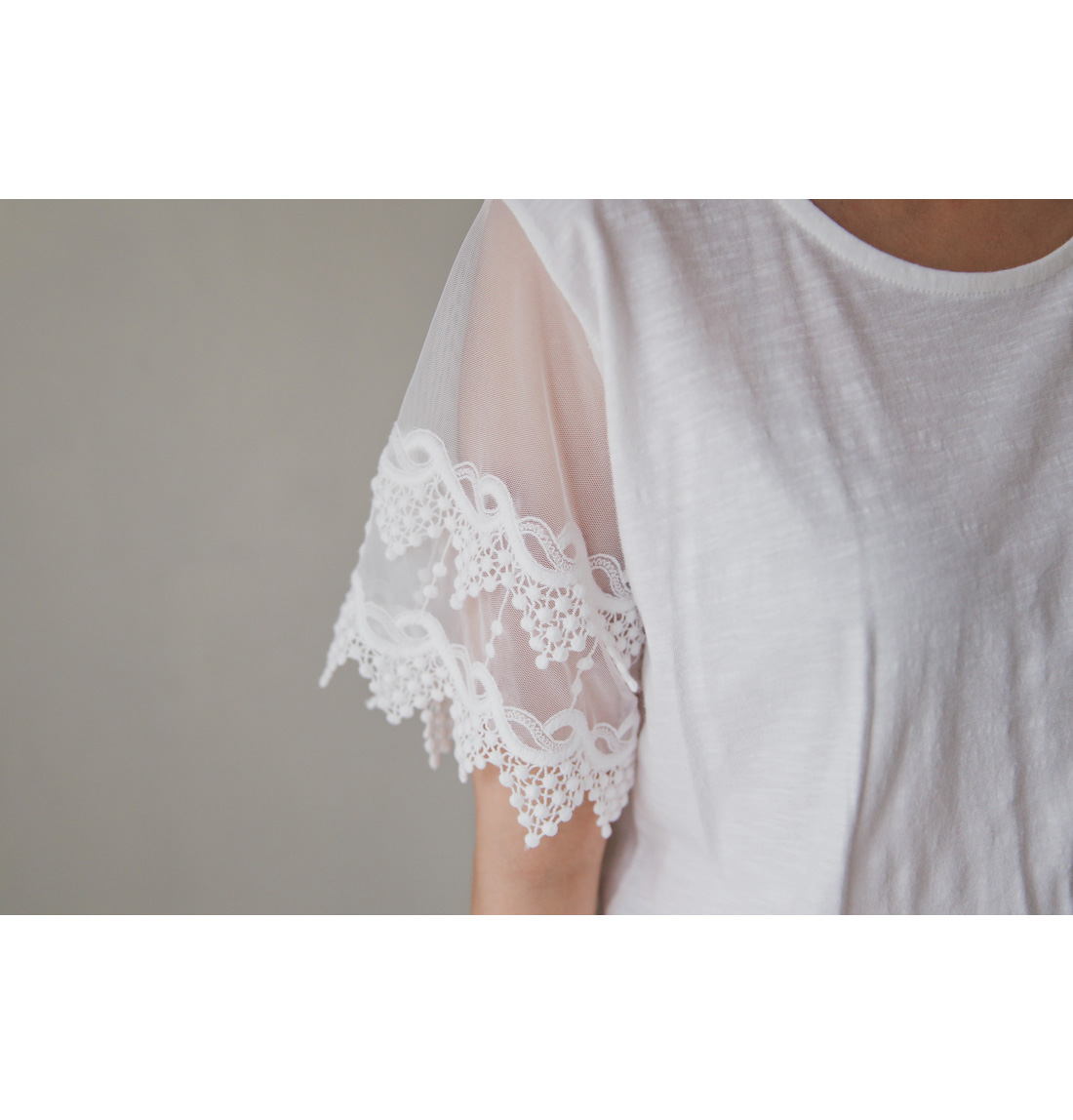 자칫 밋밋할 수 있는 디자인에 소매 레이스 디테일이 더해져