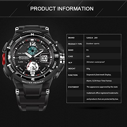 Function: Calendar Date Week Month, Alarm, Water Resistant,Back Light,Shock Resistant,Stop Watch.