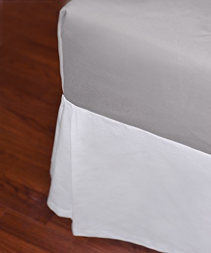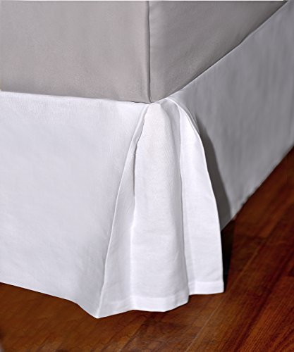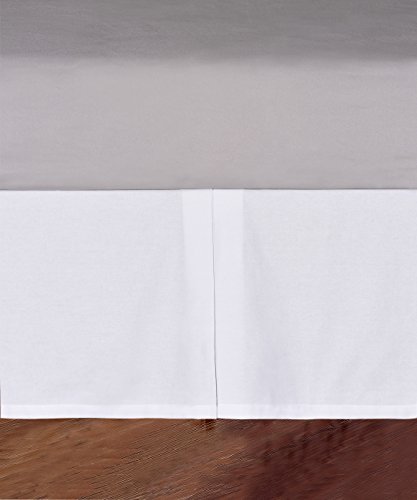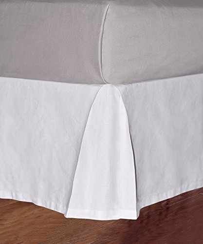 Serenta Solid White Cotton Canvas Drop Bed Skirt with Quadruple Pleated, 15 Inches Drop Length, Queen