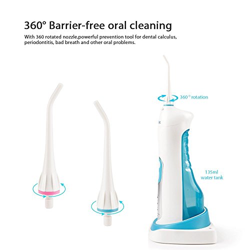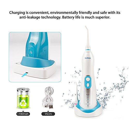 BATTERY LONGEVITY: NURSAL water flosser can be used twenty (20) times once full charged. No direct electricity or battery replacement is needed hence safer and more convenient. ( 1 USB charging wire & 1 charging base included)