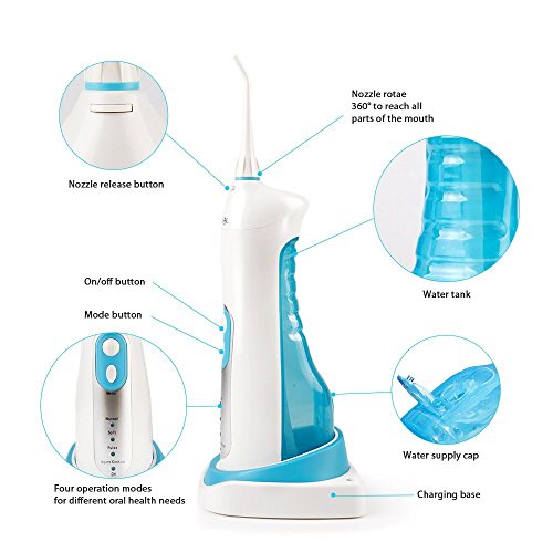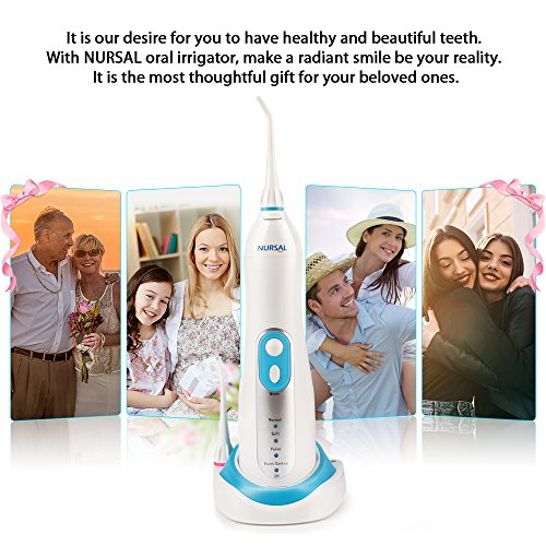 NURSAL New and Improved Rechargeable Oral Irrigator with 4 Modes Dental Care Professional Water Flosser with 1 Nozzle Replacement and High Capacity...