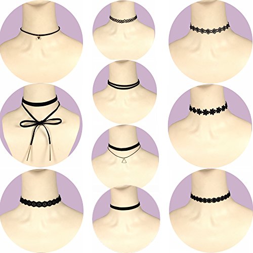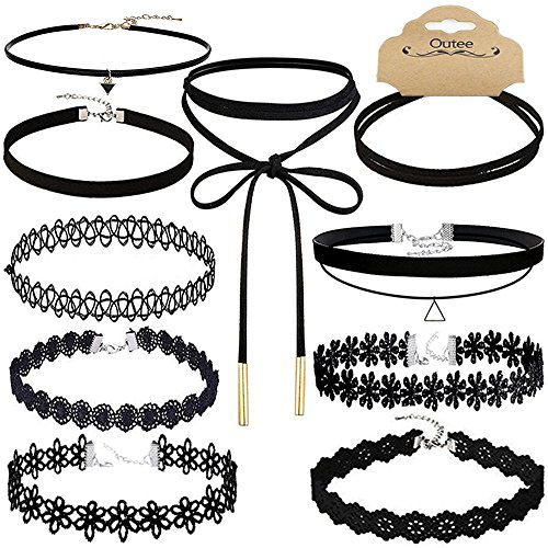 Outee 10 PCS Black Women Chokers Necklaces Set Cute Chokers Set