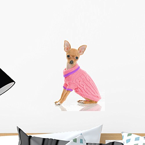 Wallmonkeys Chihuahua Dog in Pink Sweater Peel and Stick Wall Decals WM118042 (18 in H x 12 in W)