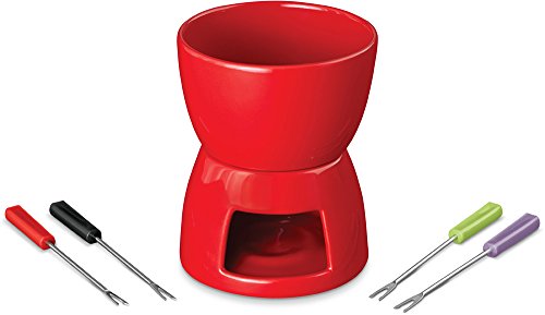 -. Feature : Ceramic Fondue Melting Pot / Perfect for dipping and sharing chocolate-covered treats / Includes: 2-piece ceramic fondue pot, 4 fondue dipping forks and instructions / Melt Candy Melts candy or dipping chocolate and serve, using tea light to keep warm / Tea light sold separately