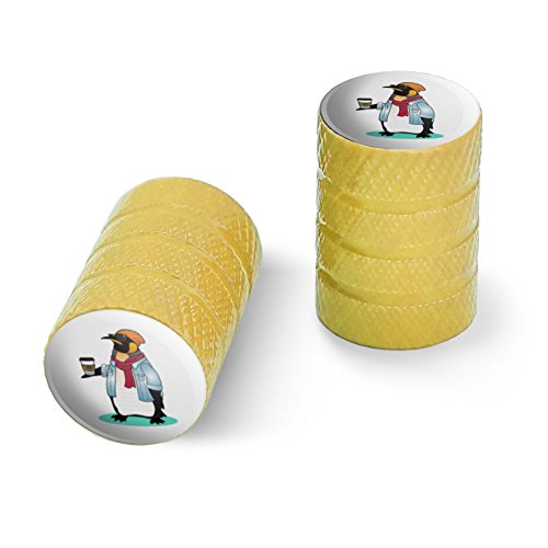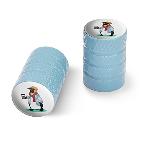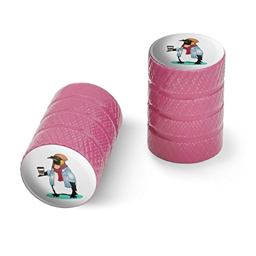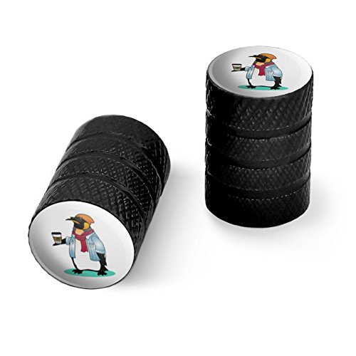 | (Graphics and More)/Cycling Wheel Sports/Bike Trainers/DIRECT FROM USA/Cool Penguin Hipster with Coffee Motorcycle Bicycle Bike Tire Rim Wheel Aluminum Valve Stem Cap... |