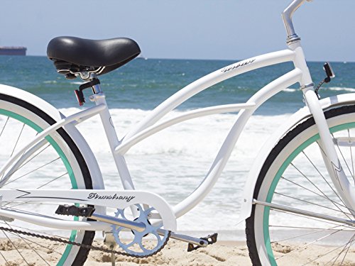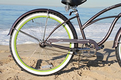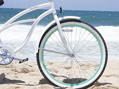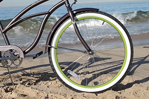 Firmstrong Urban Lady Boutique Single Speed Beach Cruiser Bicycle, 26-Inch, White/ Green Rim