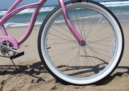 Firmstrong Urban Lady Single Speed Beach Cruiser Bicycle, 26-Inch, White w/ Pink Rims