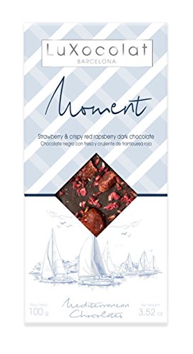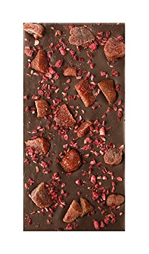 -. Feature : Exceptional Chocolate from Barcelona / SP.R.Inkled with candied strawberries and raspberry / 64% dark chocolate / Made in Barcelona / 4th generation chocolatiers