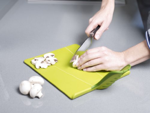 - Feature : Innovative, folding chopping board in green / Polypropylene living hinges folds into a chute when the handle is squeezed to guide food into pot / Measures 15 by 8-3/4 by 0-1/2 inch; comfortable, soft grip handle; non-slip feet / One-of-a-kind kitchen accessory designed by twin brothers Richard and Antony Joseph / Dishwasher safe