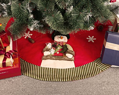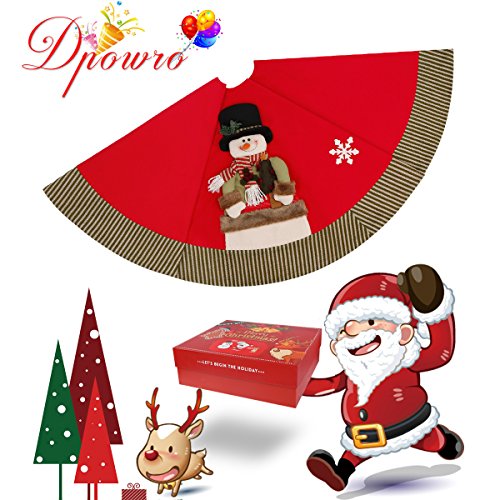 DPOWRO CHRISTMAS TREE SKIRT 48 INCHES RED LUXURY COTTON TREE SKIRT WITH SNOWMAN SNOWFLAKE ORNAMENT HOLIDAY DECORATIONS (CHRISTMAS GIFT BOX AVAILABLE)