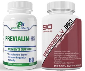 Uterine Fibroid Product Package: For Large or Multiple Fibroids. This is our complete package which includes four of our products for shrinking and dissolving Uterine Fibroids plus helping your immune system. This package contains Serrasolv 360 SU's which is considered our staple product that dissolves uterine fibroids plus reduces pain and inflammation. For anyone who has had a Uterine Fibroid for more than a year, multiple Fibroids, or fibroids 2 cm or larger, we highly suggest adding Previalin-HS . By adding Serrasolv 360 you are taking a more aggressive approach to dissolving your Fibroid. Previalin-HS (Soy Free) is also highly recommended for Uterine Fibroids as it will help balance hormone levels and metabolize excess estrogen. These imbalances are usually what caused the fibroid to grow to begin with.Feature