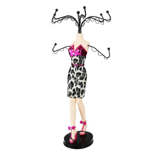 -. Binding : Kitchen -. Brand : JewelryNanny -. Feature : Makes a great gift! / Comes in a convenient decorative box perfect for gift giving / Sparkly leopard material, and adorable bow with crystal to finish look / Sturdy and durable! Measures 14" x 7" / Built to handle all kinds of jewelry -. Label : JewelryNanny -. Manufacturer : JewelryNanny -. ProductGroup : Home -. ProductTypeName : HOME -. Publisher : JewelryNanny -. Studio : JewelryNanny -. Title : Glamour Wild Leopard Cocktail Dress Mannequin Jewelry Stand