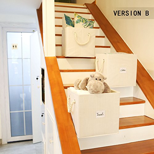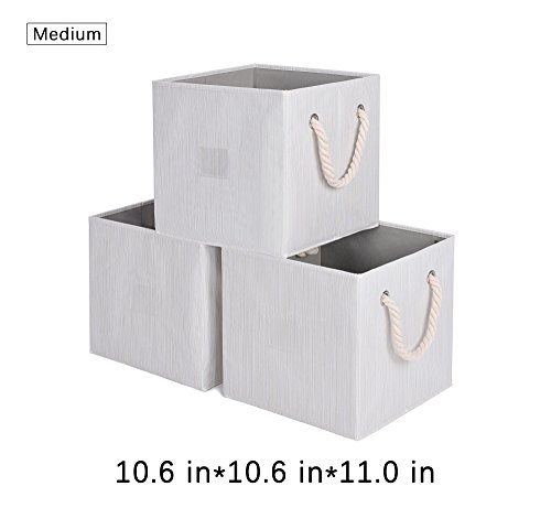 StorageWorks Polyester Storage Cube Box with Strong Cotton Rope Handle, Foldable Basket Organizer Bin, White, Bamboo Style, Medium, 3-Pack