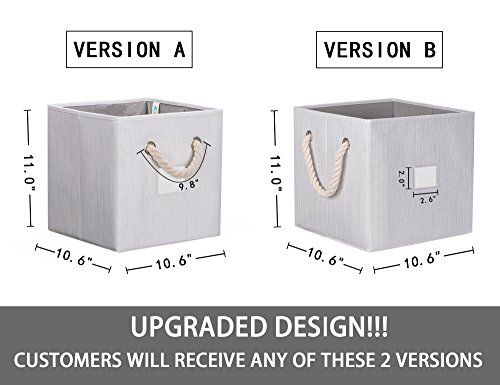 - COMPLEMENTARY USE: These storage cubes fit best on stackable shelves and desktops, or in cube organizers and closets. They suit well in office, living room, baby bathroom, bedroom, cubby, bathroom and so on, suitable for storing toys and office supplies etc. The size is 10.6*10.6*11.0 inches. (L*W*H)