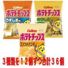 calbee 포테이토칩 감자칩 얇은 하여 올라 콘소메펀치 12개씩 합계36 개세트