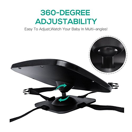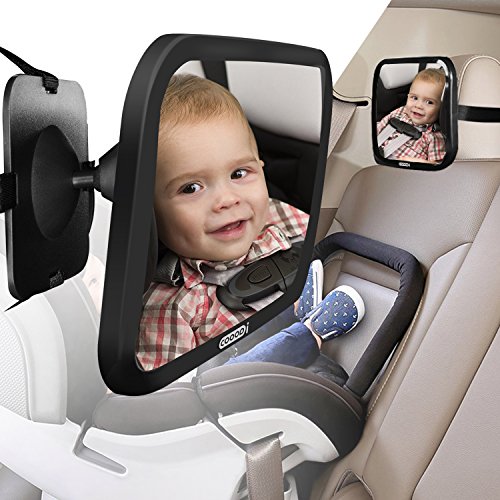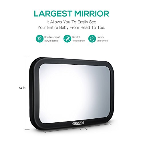 Baby Rear Seat Car Mirror by COOODI-Extra Large Size, 360 Degree Adjustability, Shatterproof - Essential Safety Accessory For Newborns and Young Children
