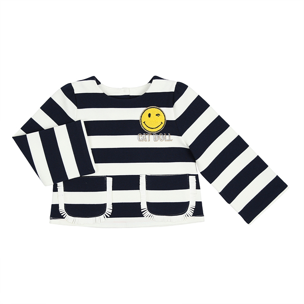 상세설명-포캣부분이 귀여운 느낌이며 셋트 치랭스나 네이비치랭스와도 코디가 용이한 탑 티셔츠입니다