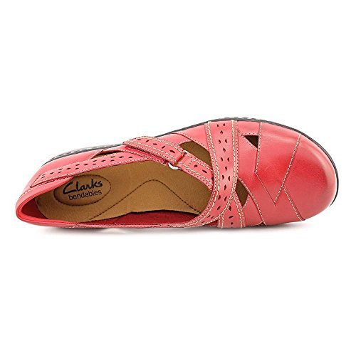 Women's Clarks, Ashland Spin Slip on Shoe Enjoy casual comfort with these slip ons Leather upper with contrast stitching Adjustable hook and loop closure strap for a snug fit Fabric lining Ortholite cushioned footbed for added comfort Rubber outsoleFeature